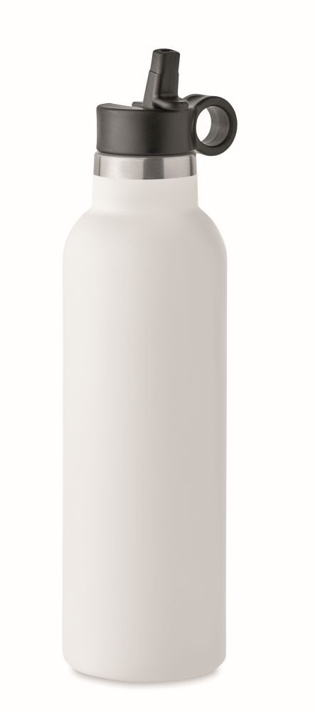 Dvoustěnná láhev na pití 700ml, s integrovaným brčkem, bílá