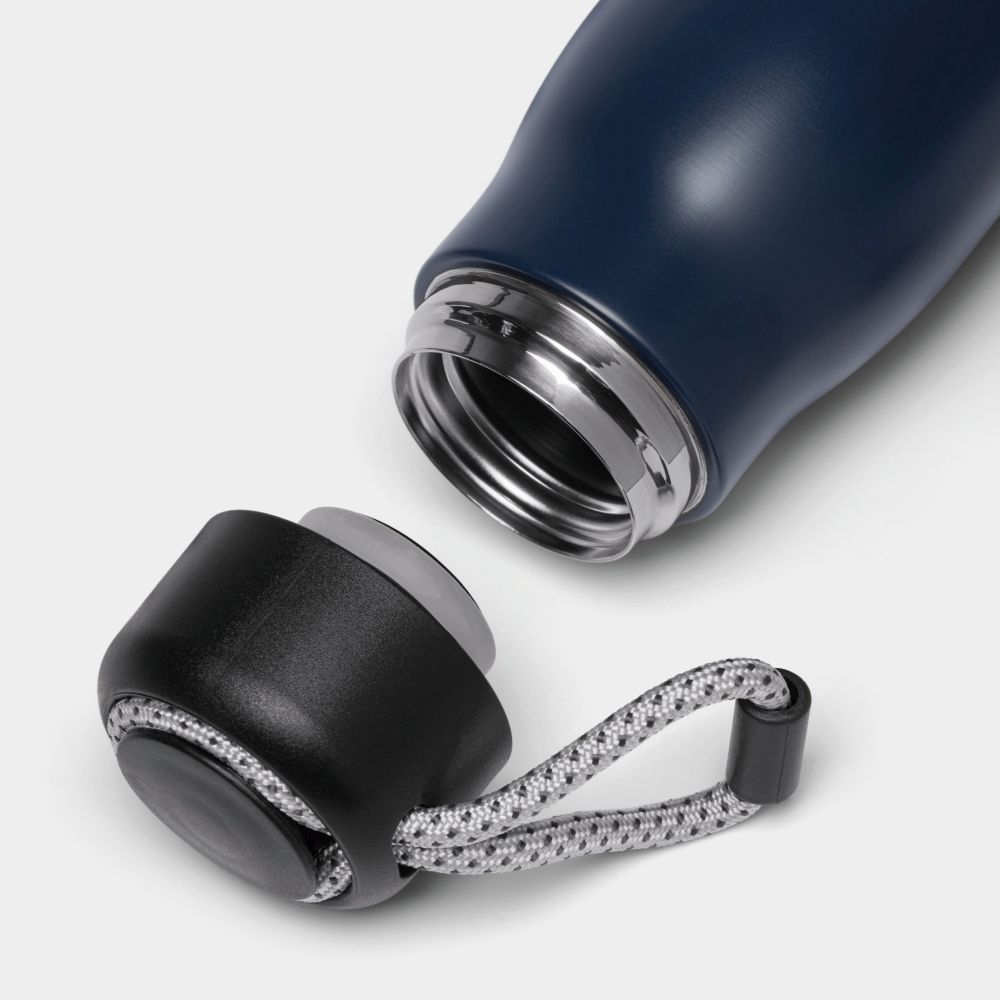 Dvoustěnná termoska z nerezové oceli s černým šroubovacím víčkem a poutkem, objem 500 ml. Teplotu horkého nápoje udrží cca 8 hodin a teplotu studeného nápoje cca 12 hodin. Rozměry: O 7 × 26 cm.