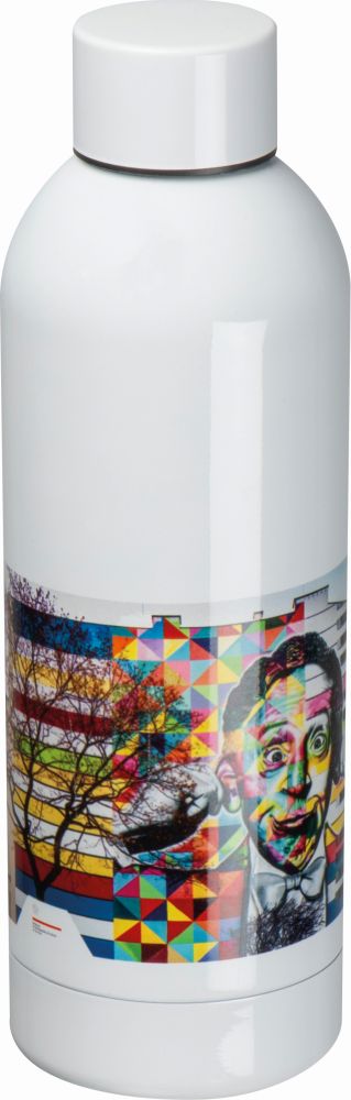 Dvoustěnná vakuová láhev na pití z nerezové oceli. Láhev má bílý povrch určený k sublimačnímu potisku. Objem láhve 500ml. Rozměry: o 7,1 x 22,5 cm