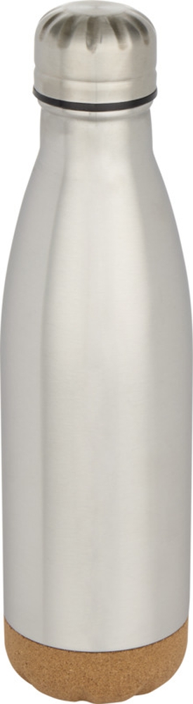 Dvoustěnná vakuově izolovaná nerezová láhev na vodu s korkovými detaily 500ml , stříbrná