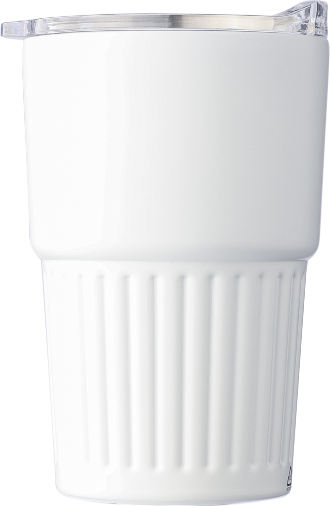 Dvoustěnný cestovní hrnek z recyklované nerezové oceli 450 ml, bílá