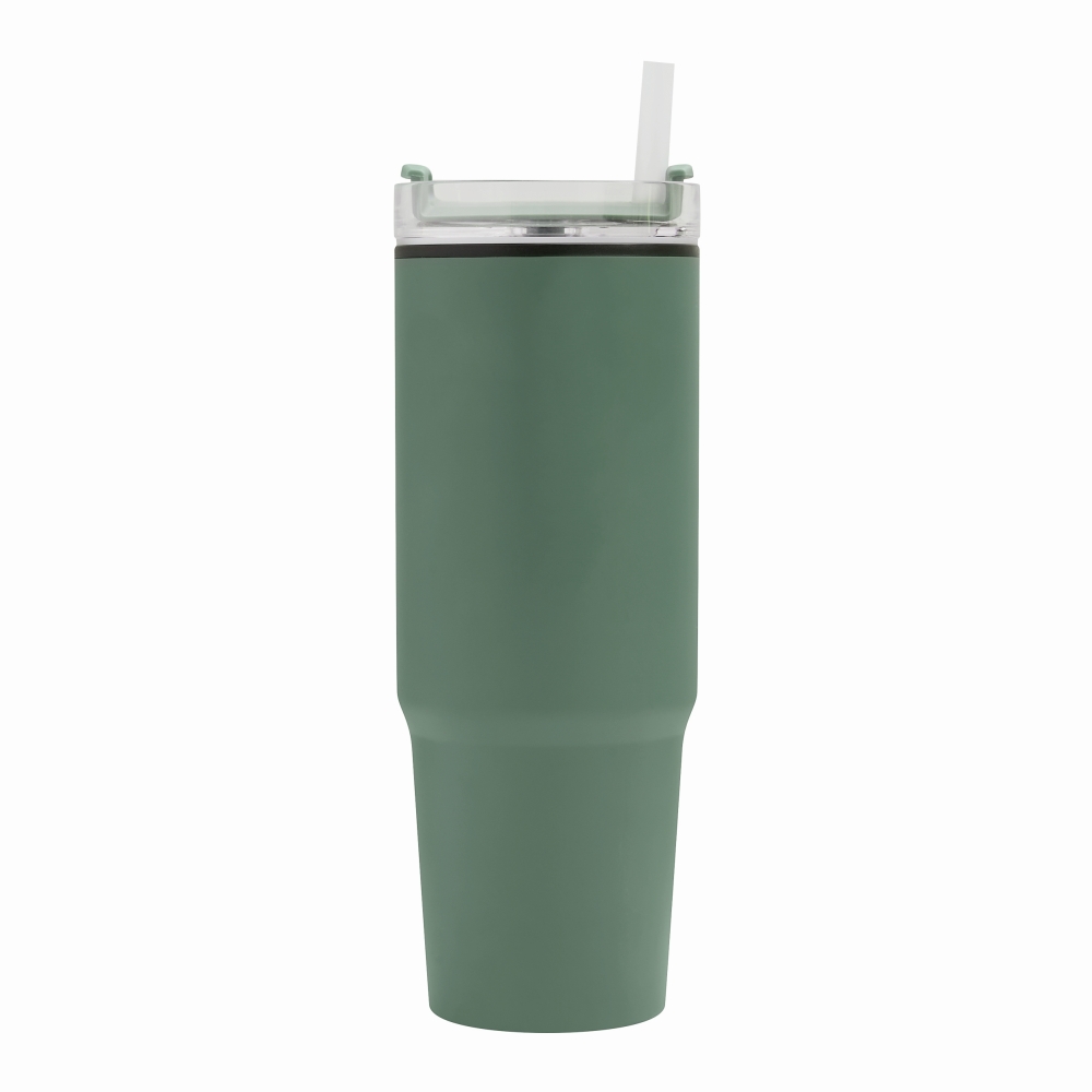 Dvoustěnný hrnek XXL, jehož vnitřek je vyroben z plastu a vnější část z nerezové oceli o objemu 900 ml. Hrnek má praktickou rukojeť, transparentní plastové víčko se šroubovacím uzávěrem, silikonový těsnící kroužek, otvor na pití s otočným krytem a průhledné brčko. Rozměry: O 8,8 × 24 cm.