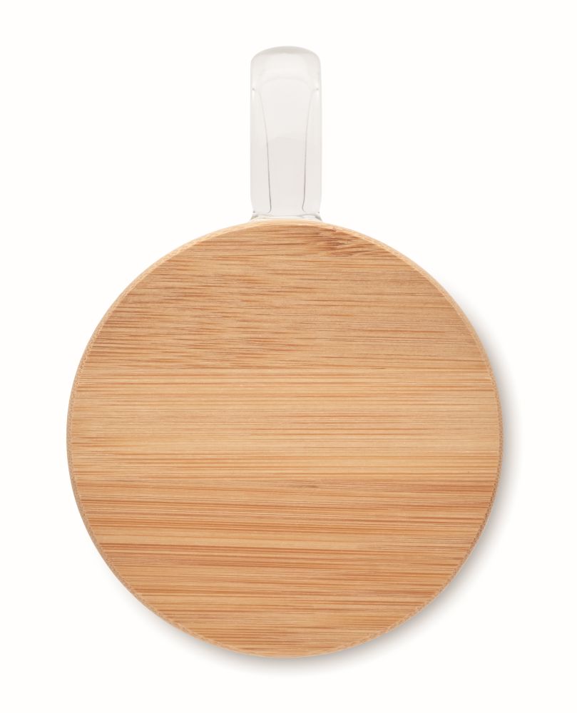 Hrnek z borosilikátového skla s dvojitou stěnou, uchem a bambusovým víčkem. Objem: 300 ml. Rozměry: O8.5x13cm