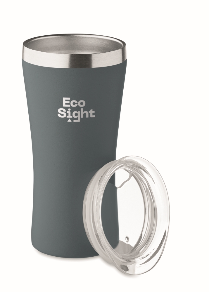 Malý dvoustěnný vakuově izolovaný termohrnek z recyklované nerezové oceli (90 % recyklované nerezové oceli a 10 % nerezové oceli) s víčkem s otvorem na pití z průhledného PP. Objem: 160 ml. Rozměry: O 6 x 11.5 cm. Materiál: nerezová ocel