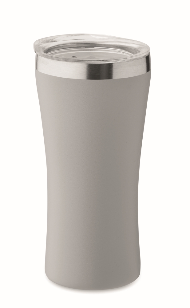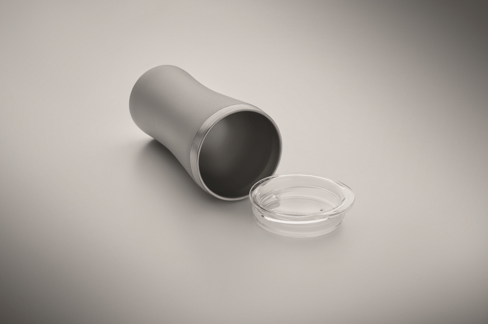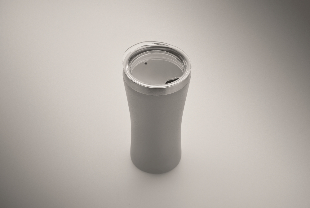 Malý dvoustěnný vakuově izolovaný termohrnek z recyklované nerezové oceli (90 % recyklované nerezové oceli a 10 % nerezové oceli) s víčkem s otvorem na pití z průhledného PP. Objem: 160 ml. Rozměry: O 6 x 11.5 cm. Materiál: nerezová ocel