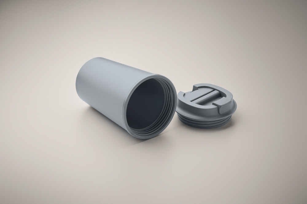 Dvoustěnný termohrnek ze 100% PLA kukuřice s víčkem z recyklovaného PP. Vnitřek z TPR. Objem: 350 ml. Rozměry: O 8.5 x 14 cm. Materiál: PET