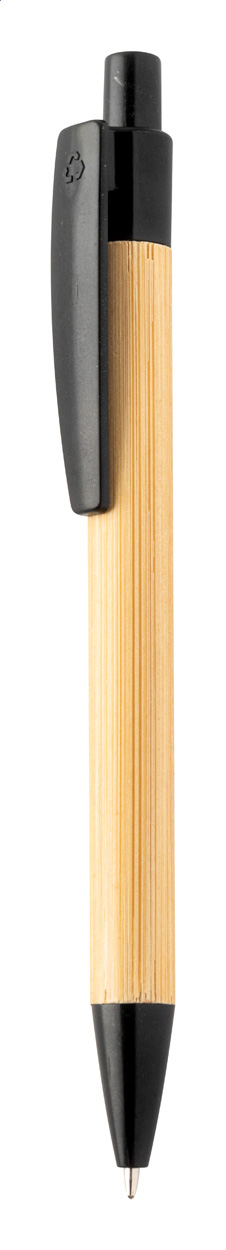 Bambusové kuličkové pero s klipem a špičkou z pšeničné slámy, s modrou náplní. Rozměry: O 1,1 × 14,2 cm.