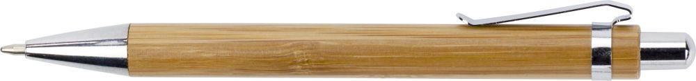 Bambusové pero s kovovými detaily a modrou náplní. Rozměry: O 1,1 × 13,8 cm.