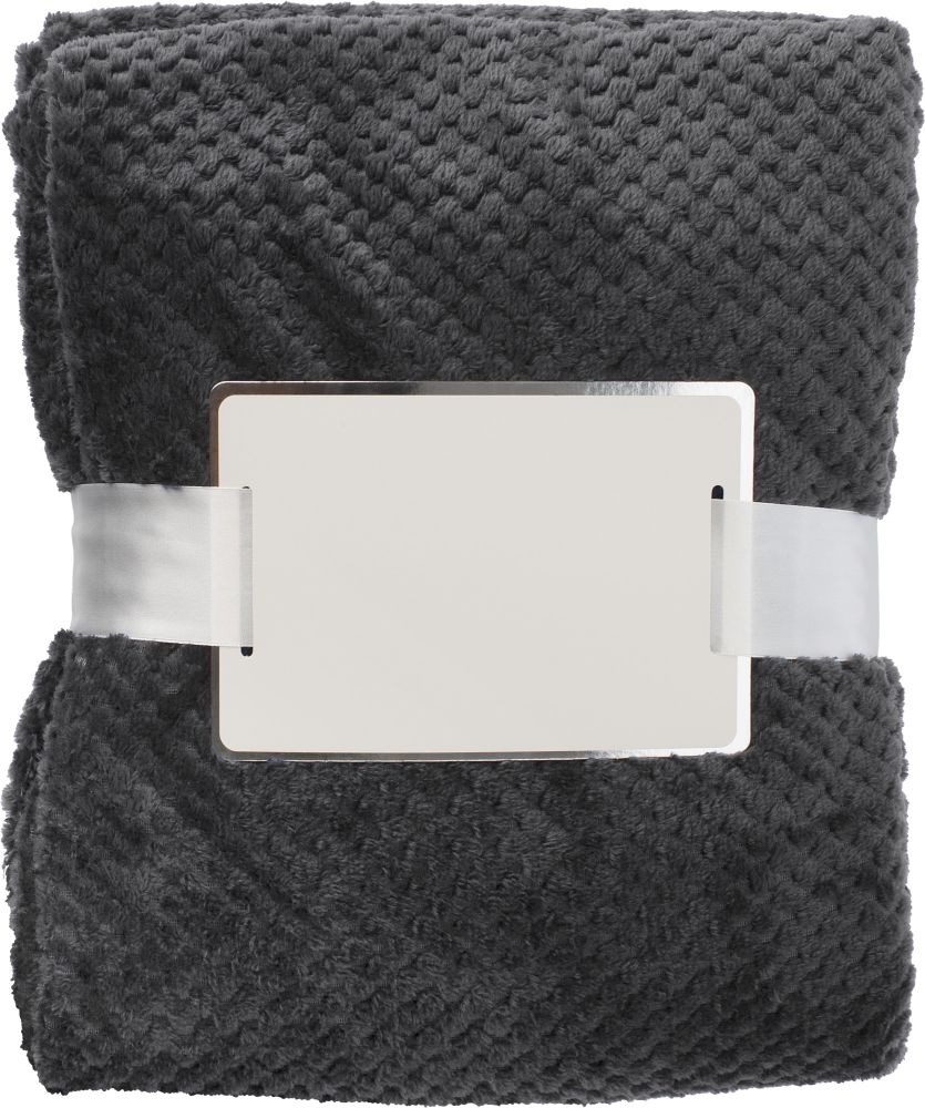 Fleecová deka s vaflovým designem, gramáž 230 g/m2, převázaná stuhou s kartičkou k potisku. Rozměry: 150 × 120 cm.