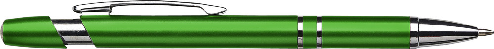 Plastové kuličkové pero kovového vzhledu se stříbrnými detaily, modrá náplň. Doporučená technologie tisku: tampontisk T2 Maximální velikost tisku: 50 × 7 mm Rozměry: o 1 × 14,2 cm Kartonové množství v ks: 1000