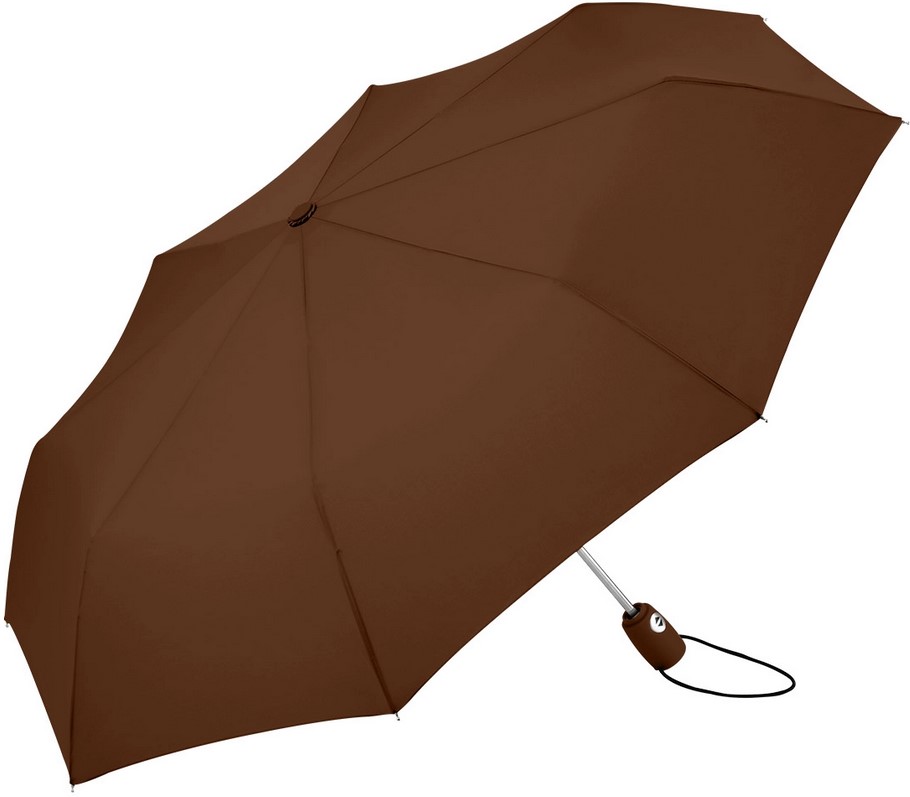 Malý skládací deštník s kovovou konstrukcí, odolný proti větru, automatický systém open–close, polyester pongee. Rozměry: O 97 cm, ve složeném stavu 28 cm.