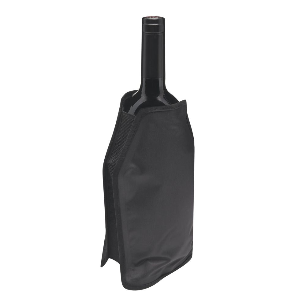 Chladicí obal na láhev vína. Materiál obalu je vodu odpudivý. Obal je naplněn chladicím gelem, po stranách má elastické pásky tak, aby dobře držel na láhvi. Je skladný a tak nezabírá při nachlazování v ledničce či mražáku místo. Obal je znovupoužitelný, rychle připravený k použití a ideální na chlazení lahví vína, sektu i jiných nápojů. Rozměry: 15,5 x 22,5 x 1,4 cm