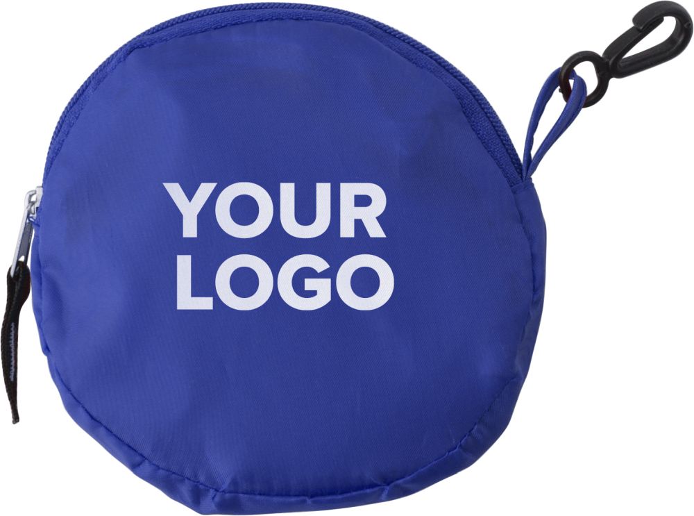 Skládací nákupní taška v pouzdře s klipem, polyester 190 T. Rozměry: složená 8 x 2,5 x 10 cm, rozložená 43 x 38 x 9 cm.