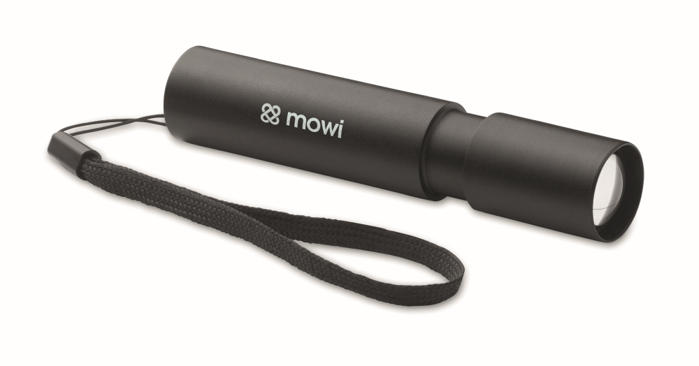 Hliníková dobíjecí svítilna. 110 lumenů, 3 režimy světla a zoom. Vestavěná dobíjecí baterie 400 mAh a nabíjecí kabel jsou součástí dodávky. Rozměry: 2,3 x 10 cm