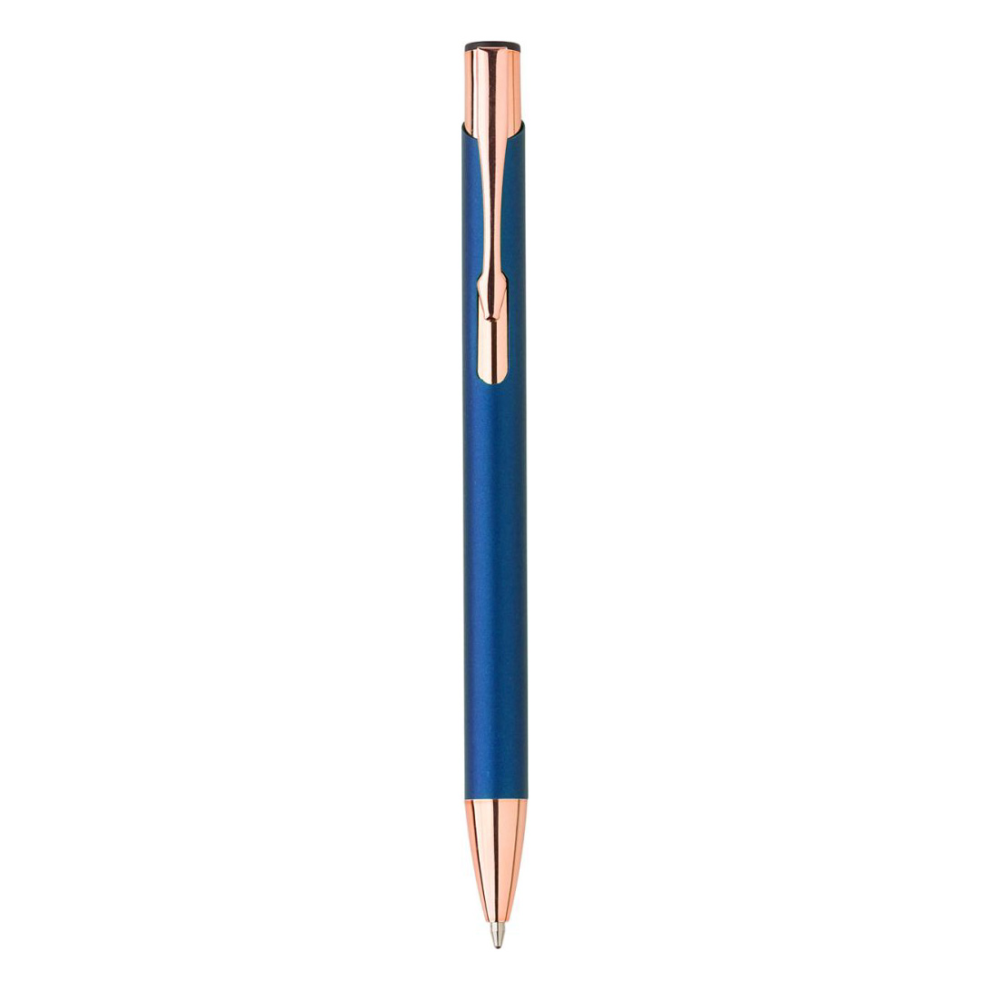Hliníkové kuličkové pero s matnou povrchovou úpravou a detaily v barvě růžového zlata. Pero má modrou náplň. Rozměry: O 1 cm