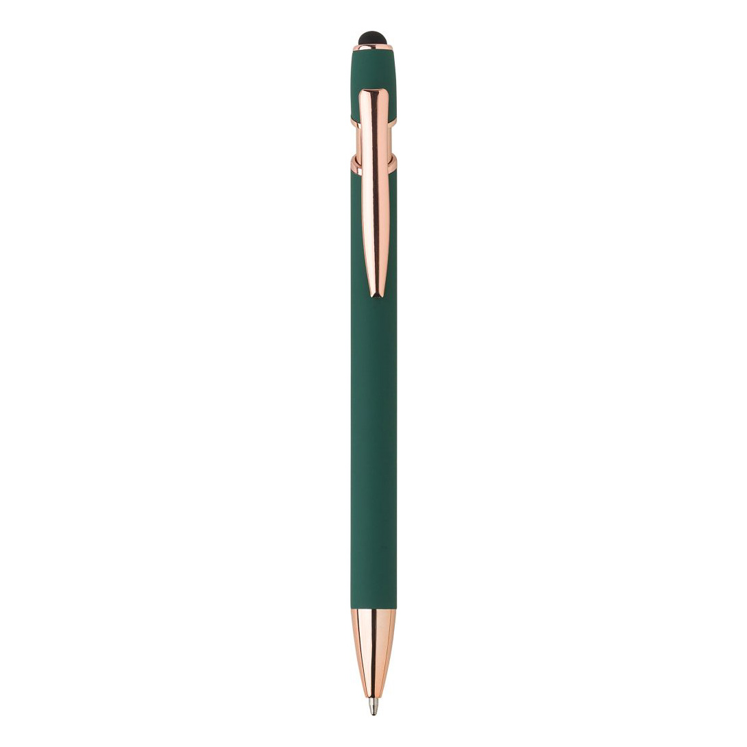 DIMADION Hliníková propiska se stylusem a detaily v barvě růžového zlata, modrá náplň, zelená