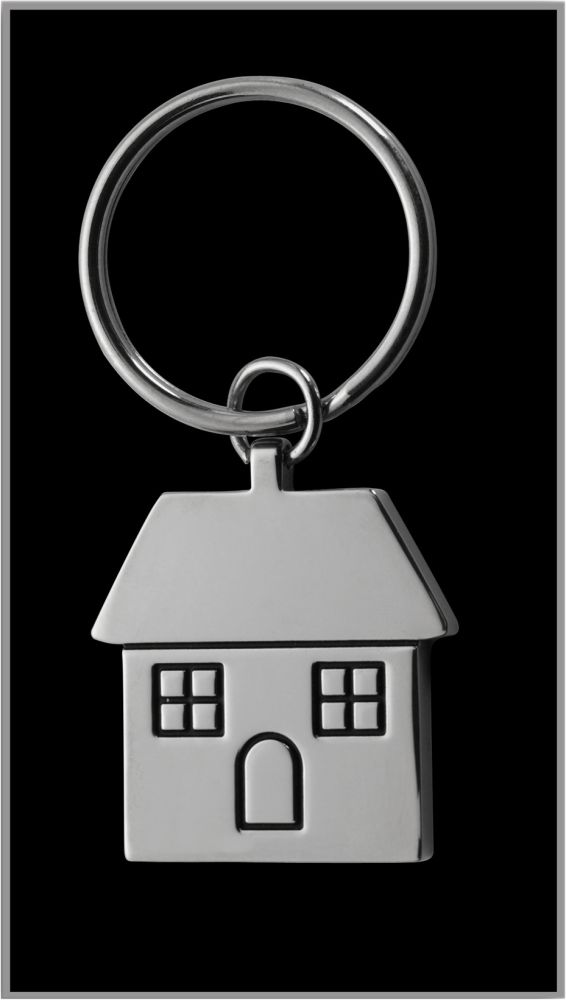 Přívěsek na klíče ve tvaru domu, v dárkovém balení, kov. Rozměry: 3,3 x 7,1 x 0,4 cm