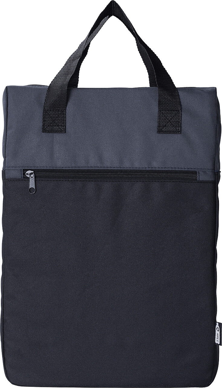 Batoh z polyesteru RPET (600D). Jedna přihrádka. Jedna přední kapsa na zip. Barevný detail nahoře, černý na spodní straně. Nosné rukojeti na horní straně. Rozměry: 27 x 14 x 40 cm