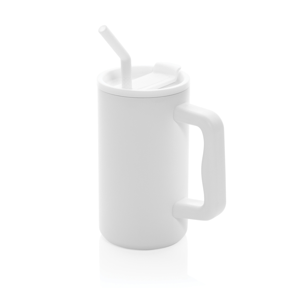 Hrnek s brčkem 800 ml z recyklované oceli s certifikací RCS, bílá