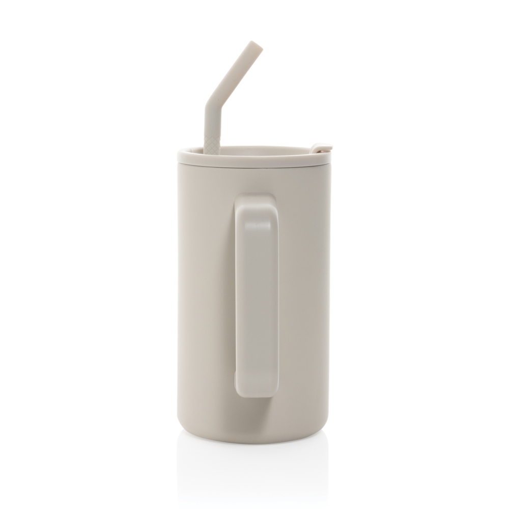 Hrnek s brčkem 800 ml z recyklované oceli s certifikací RCS, krémová
