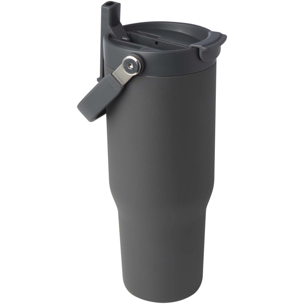 Hrnek s vakuovou a měděnou izolací 900 ml z recyklované nerezové oceli s víčkem s dvojitou funkcí, šedá