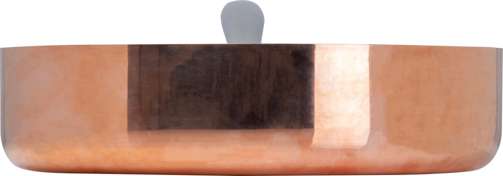 Nerezová pánev s měděným povrchem a vysokým okrajem. Vhodný pro elektrické, plynové i indukční vařiče. Měděný povrch zaručuje vynikající tepelnou vodivost a schopnost zadržovat teplo. Rozměry: o 28,5 x 5 cm