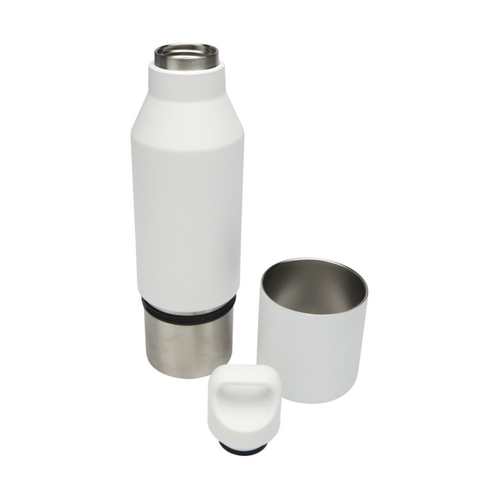 Dvoustěnná termoska jejíž součástí je i hrnek. Termoska má objem 600 ml, je vyrobena z recyklované nerezové oceli s certifikací RCS a má měděnou izolaci. Udrží horké nápoje po dobu až 12 hodin a studené po dobu až 24 hodin. Dodáváno v dárkové krabičce. Rozměry: O 7,9 × 25,4 cm.