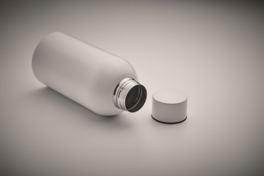Jednostěnná láhev z recyklované nerezové oceli (90 % recyklované nerezové oceli a 10 % nerezové oceli). Neteče. Objem 500 ml. Rozměry: O 7 x 16,5 cm