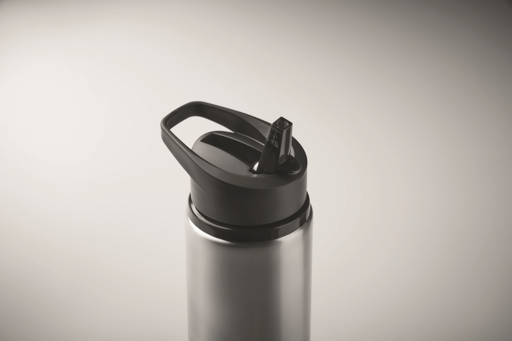 Jednostěnná láhev z recyklované nerezové oceli (90 % recyklovaná nerezová ocel a 10 % nerezová ocel) s pítkem a brčkem. Víčko s držadlem pro přenášení. Objem: 500 ml. Rozměry: O 6,5 x 18,5 cm
