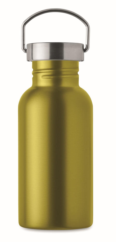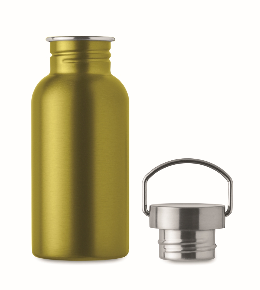 Jednostěnná láhev z recyklované nerezové oceli (90 % recyklovaná nerezová ocel a 10 % nerezová ocel) s víčkem s rukojetí. Neteče. Objem: 500 ml. Rozměry: O 7 x 18 cm