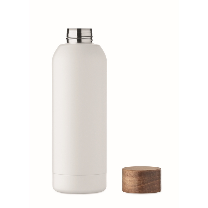 Jednostěnná láhev z recyklované nerezové oceli (90 % recyklované nerezové oceli a 10 % nerezové oceli) s pogumovým povrchem a víčkem z akáciového dřeva. Objem 700 ml. Protože se jedná o jednostěnnou láhev, může stále docházet k přenosu tepla od nápoje.Rozměry: 7 x 22,5cm