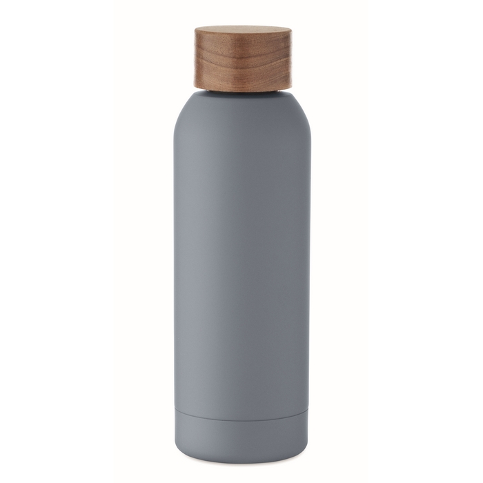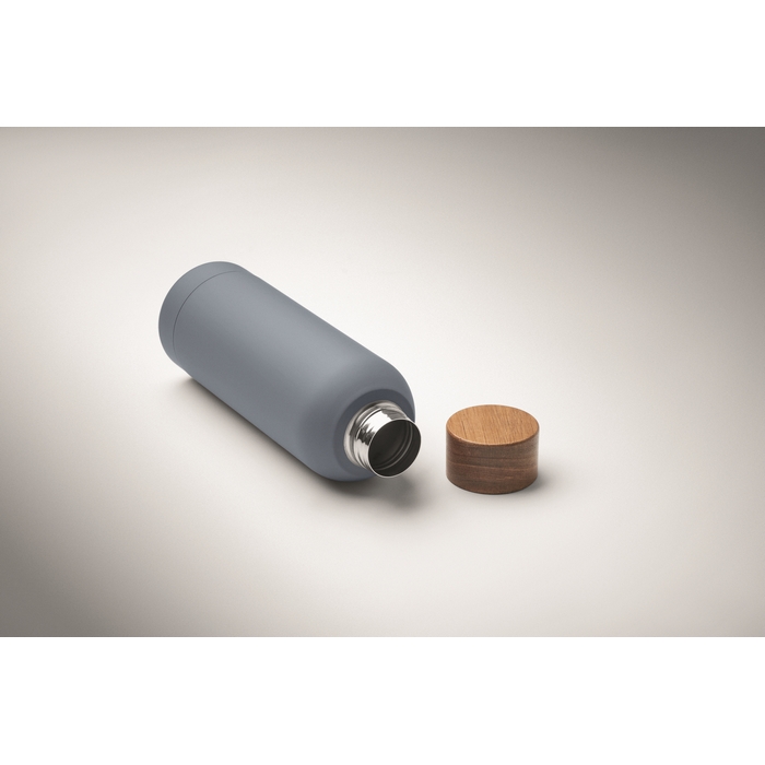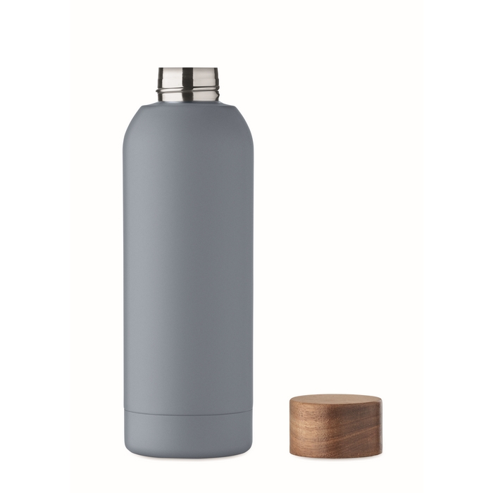Jednostěnná láhev z recyklované nerezové oceli (90 % recyklované nerezové oceli a 10 % nerezové oceli) s pogumovým povrchem a víčkem z akáciového dřeva. Objem 700 ml. Protože se jedná o jednostěnnou láhev, může stále docházet k přenosu tepla od nápoje.Rozměry: 7 x 22,5cm
