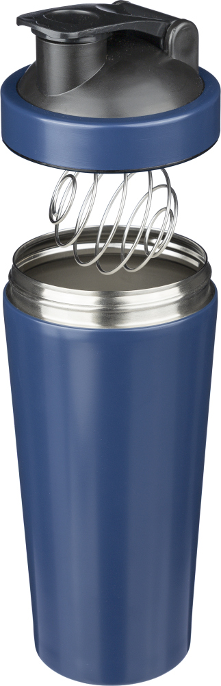 Sportovní láhev na pití z recyklované nerezové oceli (750 ml), jednostěnná. Má šroubovací víčko z PP a kovovou třepačku pro míchání. Na přední straně je laserem gravírované recyklované logo. Jednotlivě baleno v krabičce z kraftového papíru. Rozměry: 8 x 23 cm