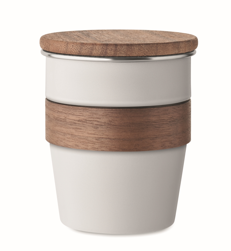 Jednostěnný termohrnek z recyklované nerezové oceli (90 % recyklované nerezové oceli a 10 % nerezové oceli) s ořechovou rukojetí a víčkem. Objem: 350 ml. Pro čištění lze rukojeť sejmout. Protože se jedná o jednostěnný hrnek, může docházet k přenosu tepla. Rozměry: O 8,5 x 10,5 cm. Materiál: nerezová ocel