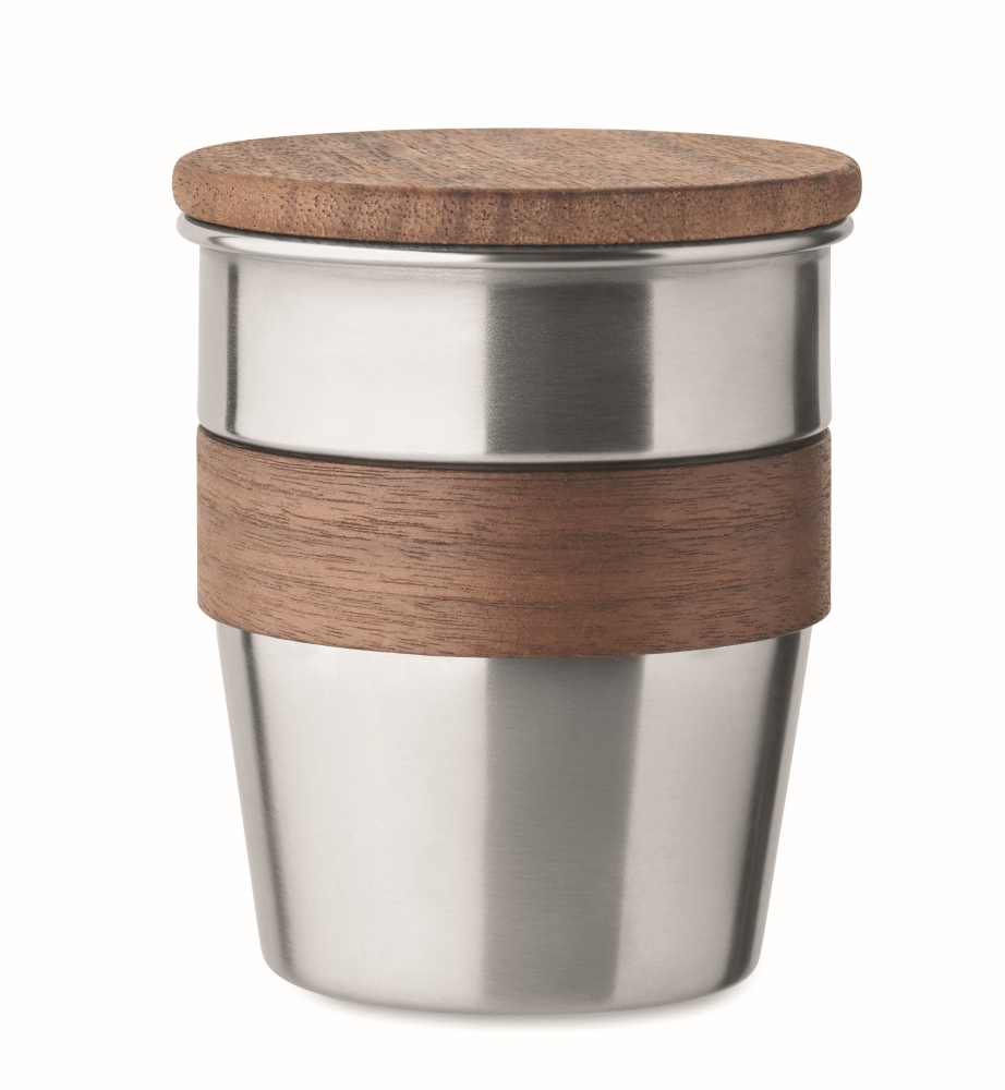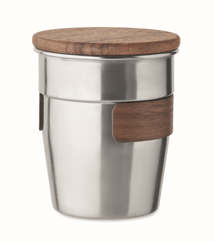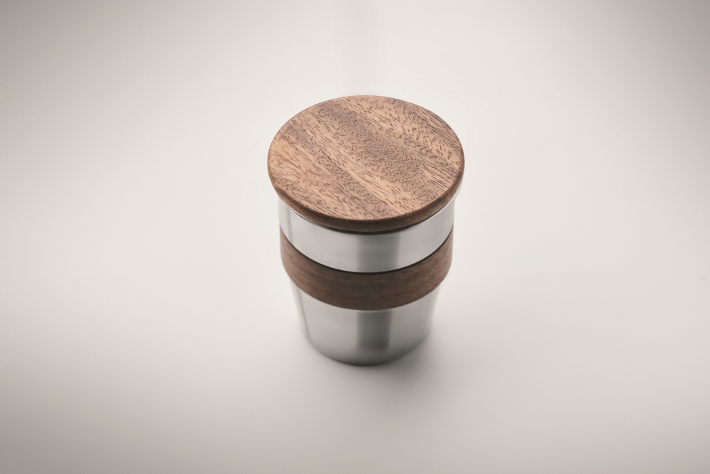 Jednostěnný termohrnek z recyklované nerezové oceli (90 % recyklované nerezové oceli a 10 % nerezové oceli) s ořechovou rukojetí a víčkem. Objem: 350 ml. Pro čištění lze rukojeť sejmout. Protože se jedná o jednostěnný hrnek, může docházet k přenosu tepla. Rozměry: O 8,5 x 10,5 cm. Materiál: nerezová ocel