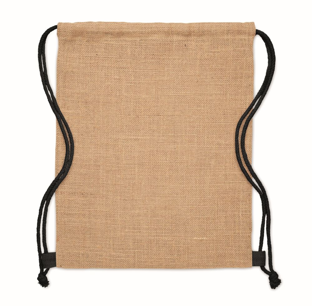 Stahovací batoh z juty s bavlněnou šňůrkou. Rozměry: 33x41.5cm