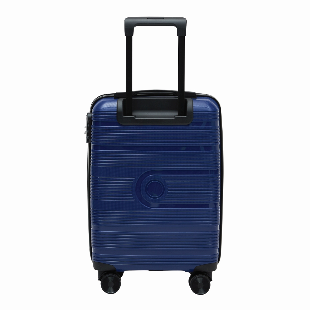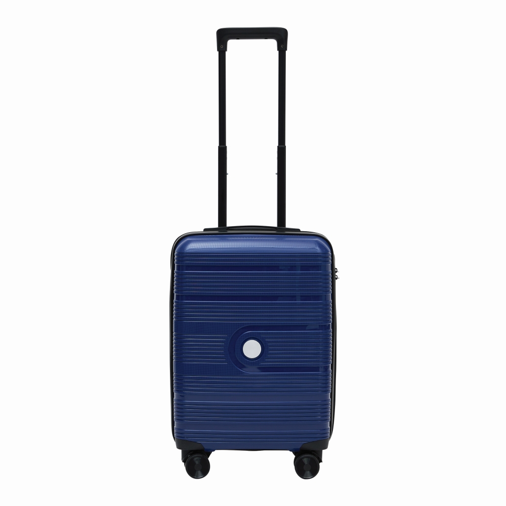 Kabinový kolečkový kufr vyroben ze zvláště odolného materiálu, balení na obou úrovních, se síťovanou kapsou na zip a elastickým balicím popruhem, teleskopické madlo s uzamykatelnou polohou pro chůzi, madlo na přenášení, 4 zdvojená kolečka s hladkým chodem 360°, vyměnitelné kovový štítek s logem vpředu, kombinační zámek; velikost odpovídající rozměrům pro kabinová zavazadla nízkonákladových aerolinek. Rozměry: cca 55 x 37 x 20 cm