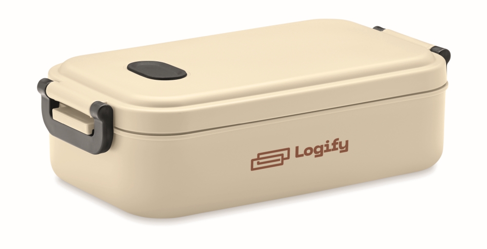 Krabička na jídlo z recyklovaného PP se vzduchotěsným víčkem, silikonovým ventilem a dvěma bočními přezkami. Objem: 800 ml. Rozměry: 21 x 11,5 x 5,5 cm. Materiál: recyklovaný PP