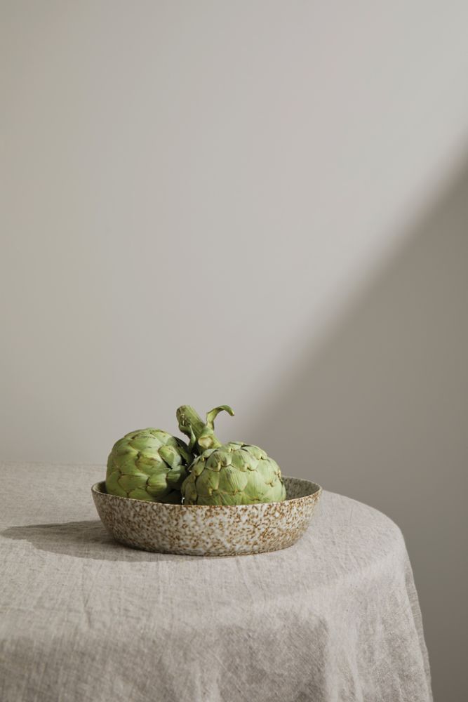Kameninová servírovací mísa. Díky charakteristickým nerovným tvarům a ručnímu glazování je každý kus skutečný unikát, který každého zaujme. Pevná kamenina je dostatečně odolná pro každodenní použití. Vhodná do myčky nádobí. Není vhodná do mikrovlnné nebo pečící trouby. Rozměry: 5.8 x o 24 cm.