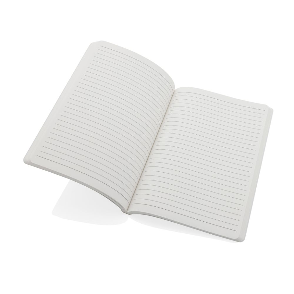 Unikátní poznámkový blok, u kterého je standardní papír včetně obalu nahrazen materiálem získávaným ze stavebního odpadu – tzv. kameniem. Přesnější složení je 80 % uhličitanu vápenatého a 20 % netoxického HDPE (čistý plast). Na zpracování tuny standardní dřevní buničiny je spotřebováno 2 770 litrů vody a 18 stromů. Při výrobě kamenného papíru se nepoužívá ani kapka vody, ani tříska dřeva a spotřeba energie je poloviční v porovnání se standardní papírenskou výrobou. Na skládce se pak rozkládá zhruba rok a zbyde po něm pouze minerální prášek. Obsahuje 60 listů/120 stran bílého linkovaného kamenného papíru o gramáži 58 g/m2. Z výtěžku každého prodaného výrobku přispíváme 2 % na podporu iniciativy Water.org. Výrobou jednoho kusu byl uspořeno 1 litr vody. Rozměry: 21.1 x 14.1 x 1.1 cm.