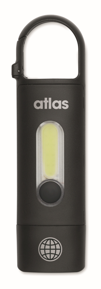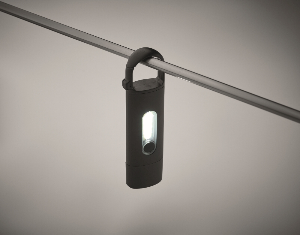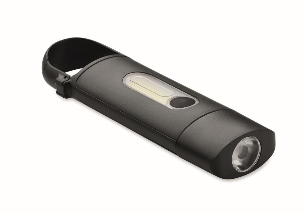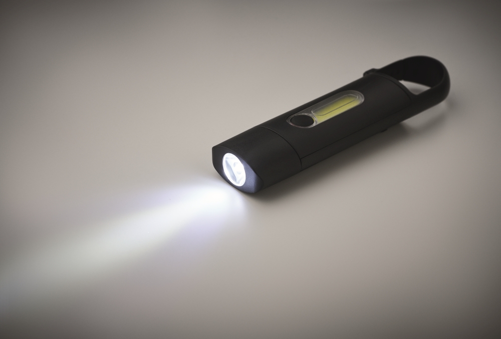 Kapesní dobíjecí COB svítilna z ABS, s karabinkou. Nouzové světlo a 3 režimy svícení. 1 x 3,7 V, 200 mAh dobíjecí lithiová baterie (součástí balení, nevyměnitelná). Rozměry: 11 x 3 x 1,5 cm. Materiál: ABS