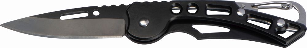 Nerezový kapesní nůž s bezpečnostní pojistkou, ergonomickou rukojetí a s karabinkou. Rozměry: 9 × 2,5 × 0,5 cm