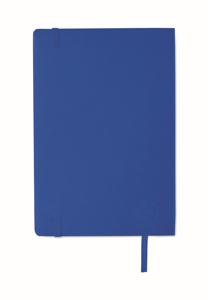 Zápisník A5 s měkkými deskami z recyklovaného PU (81% recyklovaný polyester a 19% PU). 160 linkovaných stran (80 listů)z recyklovaného papíru. Elastická uzavírací páska a záložka. Vnitřní zadní kapsa. Rozměry: 20,8 x 1 x 14 cm