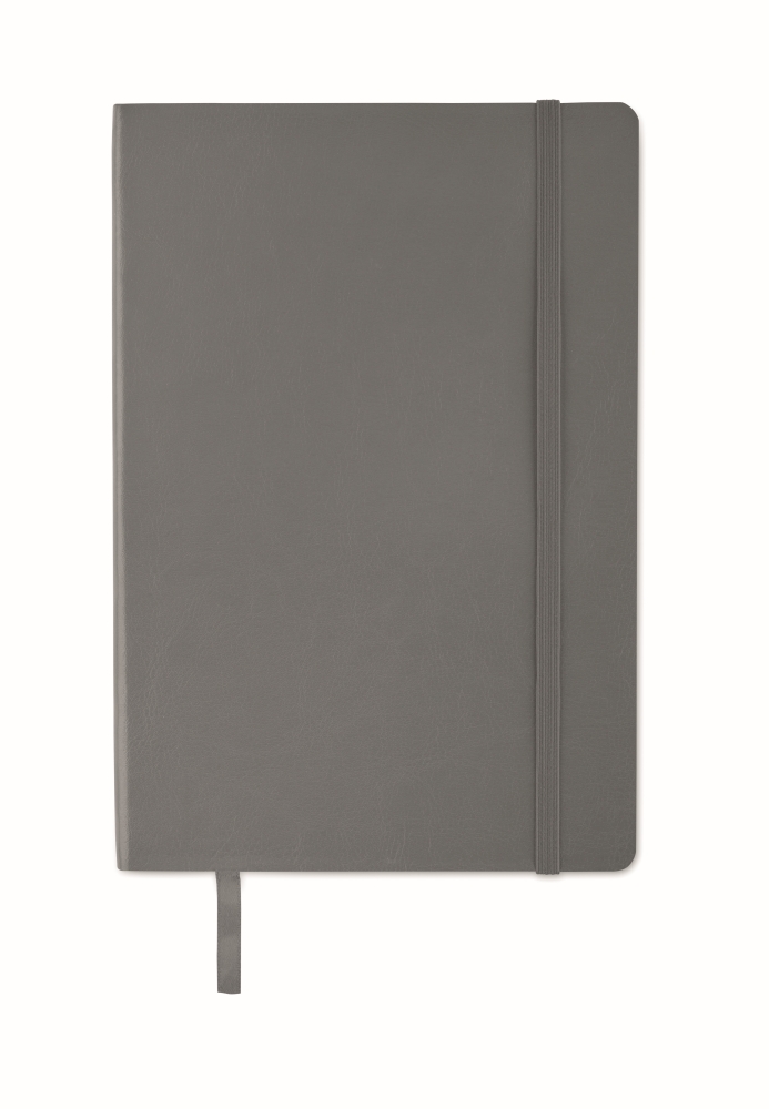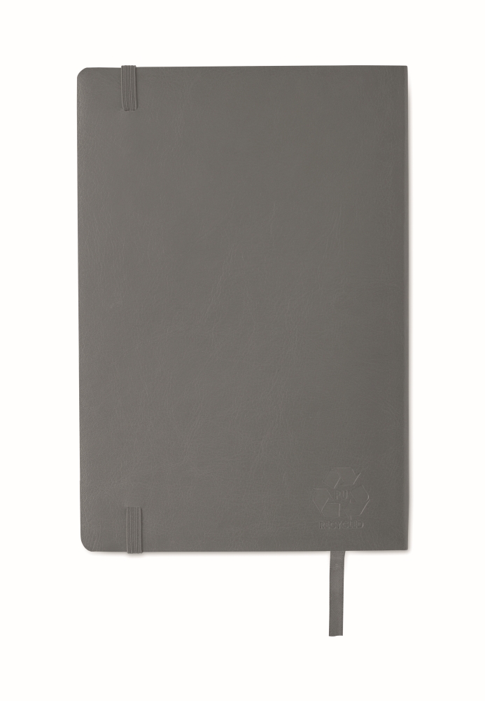 Zápisník A5 s měkkými deskami z recyklovaného PU (81% recyklovaný polyester a 19% PU). 160 linkovaných stran (80 listů)z recyklovaného papíru. Elastická uzavírací páska a záložka. Vnitřní zadní kapsa. Rozměry: 20,8 x 1 x 14 cm