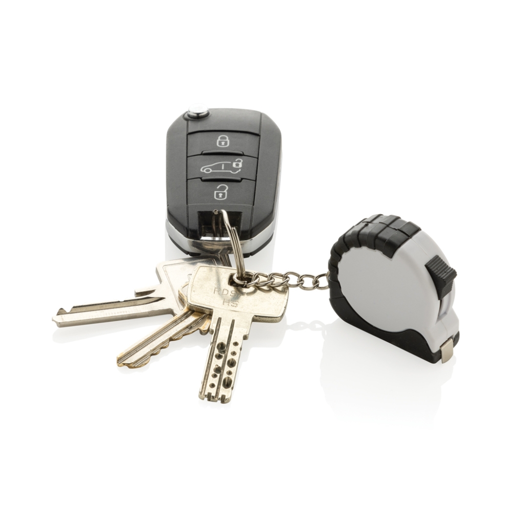 Klíčenka s 1m metrem MeasureMate z RCS recyklovaného ABS, bílá