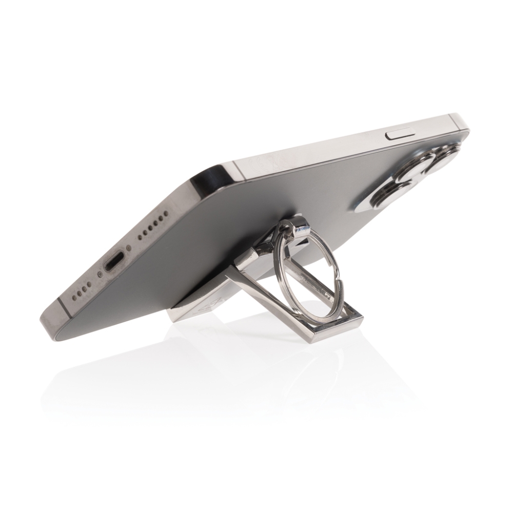 Klíčenka se stojánkem na telefon z RCS recyklované slitiny zinku, stříbrná