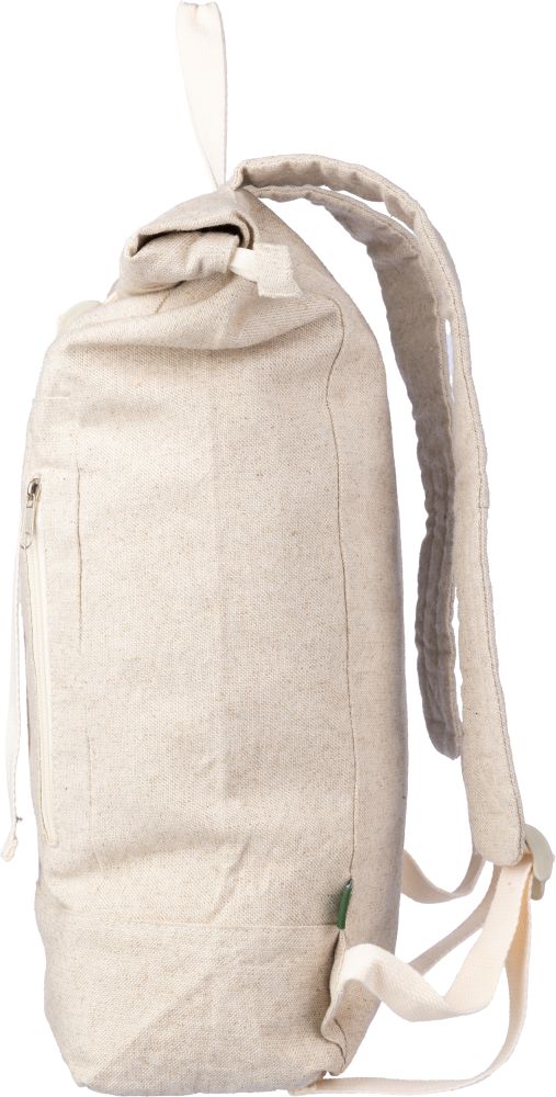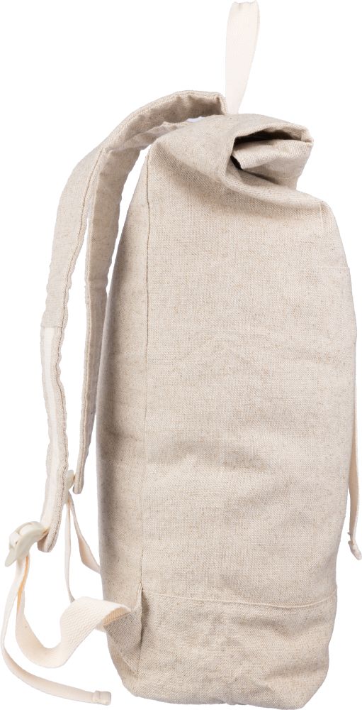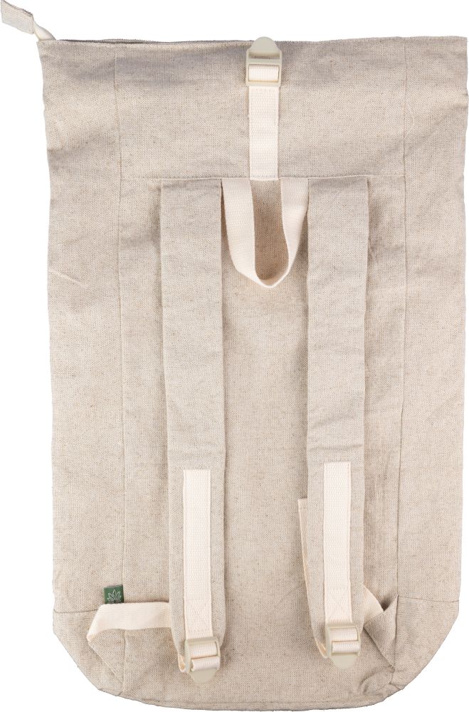 Konopný (280 gr/m2) rolovací batoh s bavlněnou podšívkou, včetně loga konopí na štítku. Materiál: konopí Rozměry: 39 x 13 x 48 cm