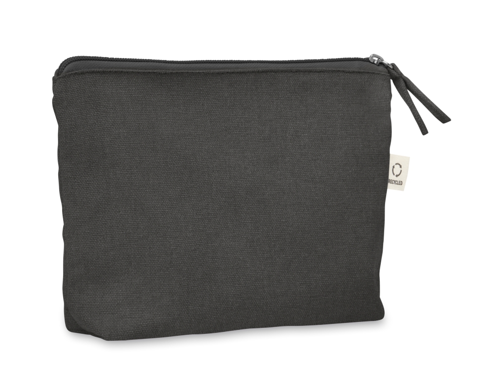 Taštička na kosmetiku a doplňky z recyklované látky (70 % recyklovaná bavlna a 30 % polyester RPET), na zip. 320 g/m2. Tento produkt se po tisku může srazit. Rozměry: 21,5 x 5 x 14,5 cm
