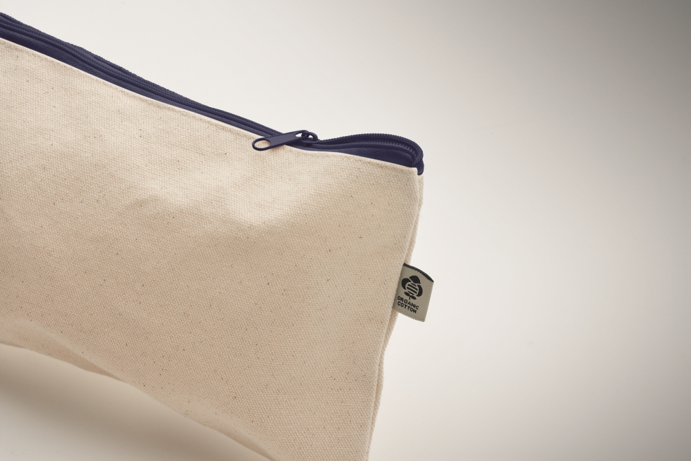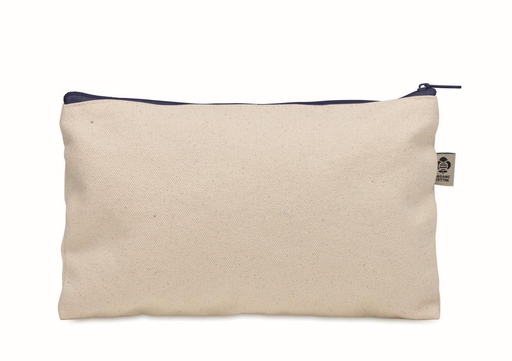 Kosmetická taštička z organické bavlny s barevným zipem. Gramáž 340 g/m2. Rozměry: 23 x 15 cm. Materiál: organická bavlna