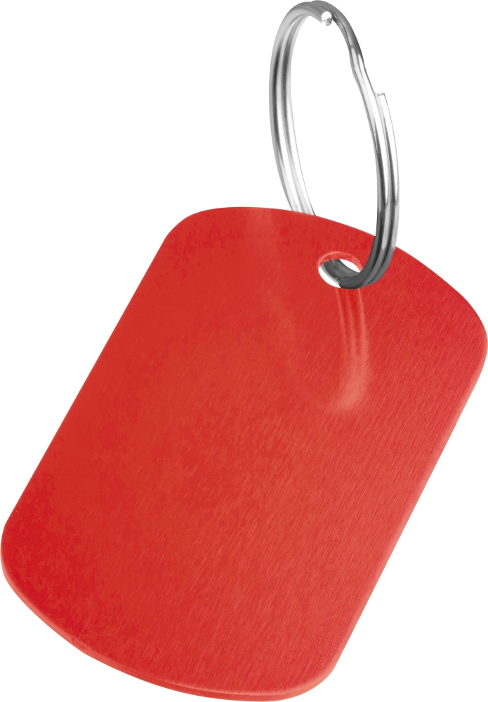 Stylová klíčenka vyrobená z recyklovaného hliníku v praktickém stylu jmenovky. Rozměry: 4,8 x 2,9 x 0,2 cm